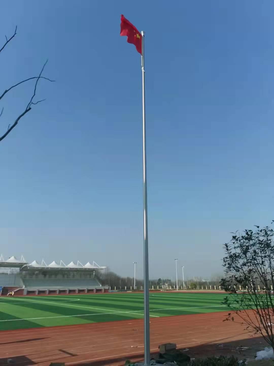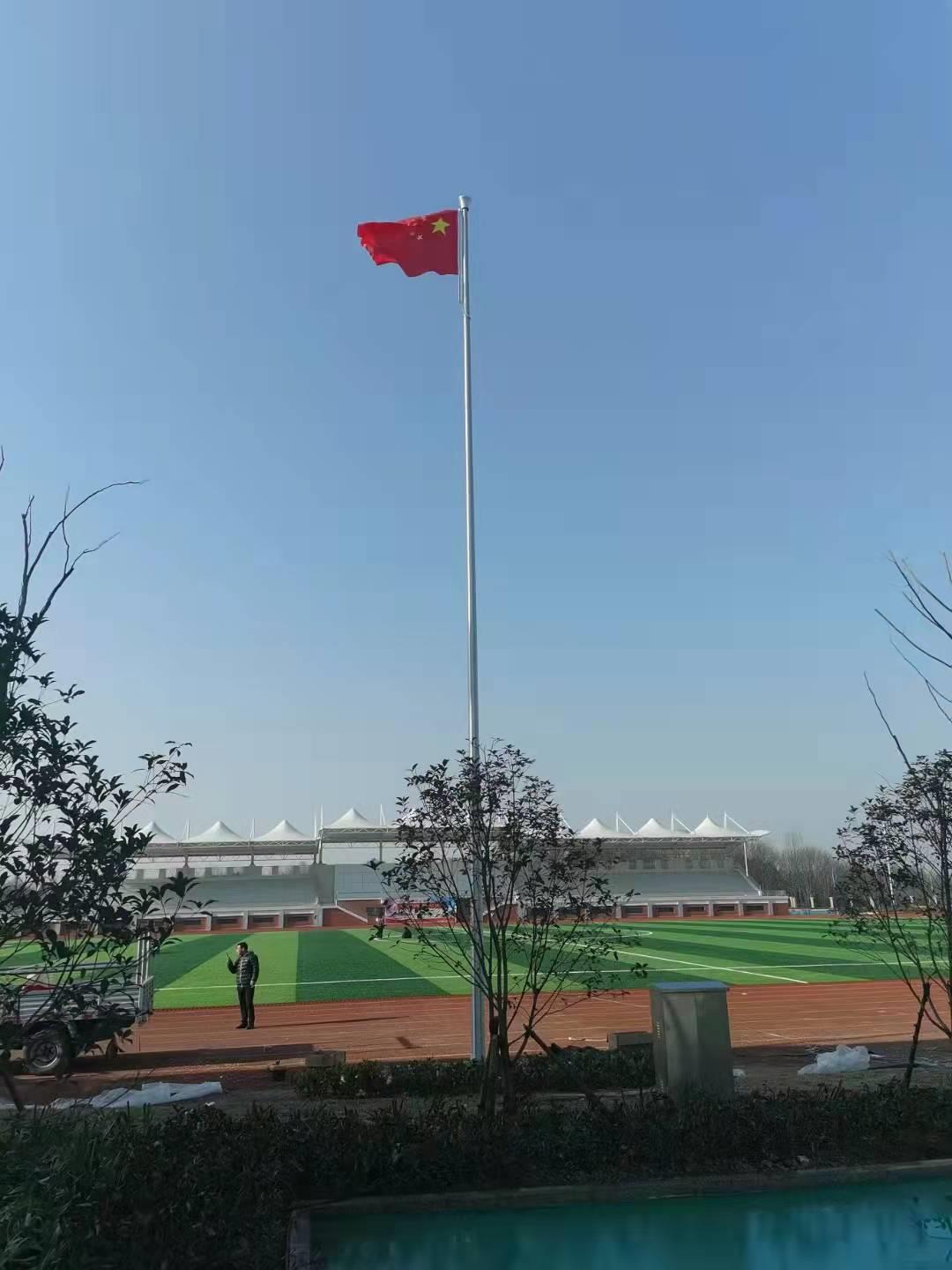 六安市金安職業(yè)學校手動錐形旗桿,此次左尚金屬安徽耀龍為六安市金安職業(yè)學校生產(chǎn)的旗桿為優(yōu)質(zhì)不銹鋼制造,旗桿錐形挺拔高大,是錐形外置式的旗桿,內(nèi)藏不銹鋼繩,旗桿外無旗繩,免去旗桿與旗繩碰撞產(chǎn)生刮痕,從而可能導致桿體易生銹。