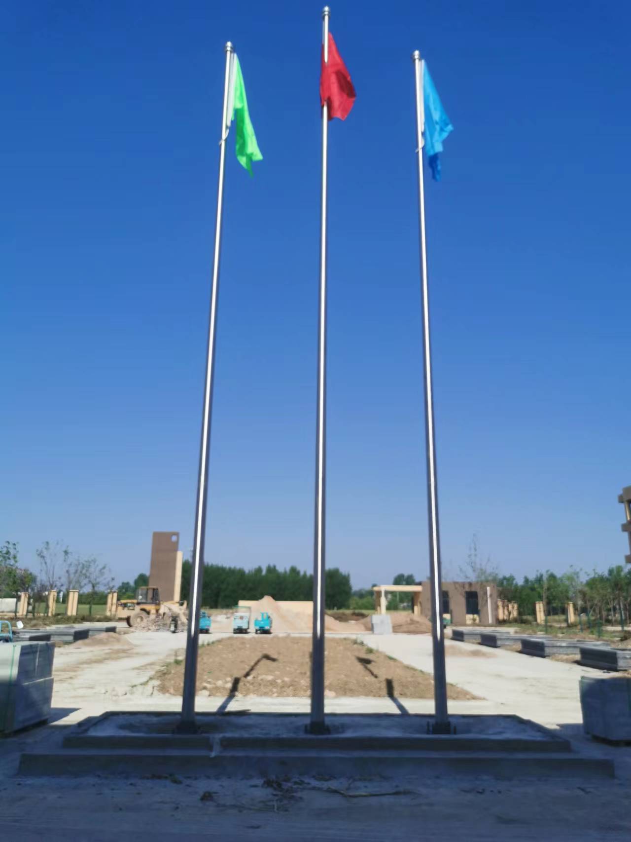 定遠縣爐橋職業(yè)中學(xué)10.8米+10米不銹鋼錐形旗桿,此次安徽耀龍為定遠縣爐橋職業(yè)中學(xué)生產(chǎn)的旗桿為優(yōu)質(zhì)不銹鋼制造,旗桿錐形挺拔高大,是錐形外置式的旗桿,內(nèi)藏不銹鋼繩,旗桿外無旗繩,免去旗桿與旗繩碰撞產(chǎn)生刮痕,從而可能導(dǎo)致桿體易生銹。